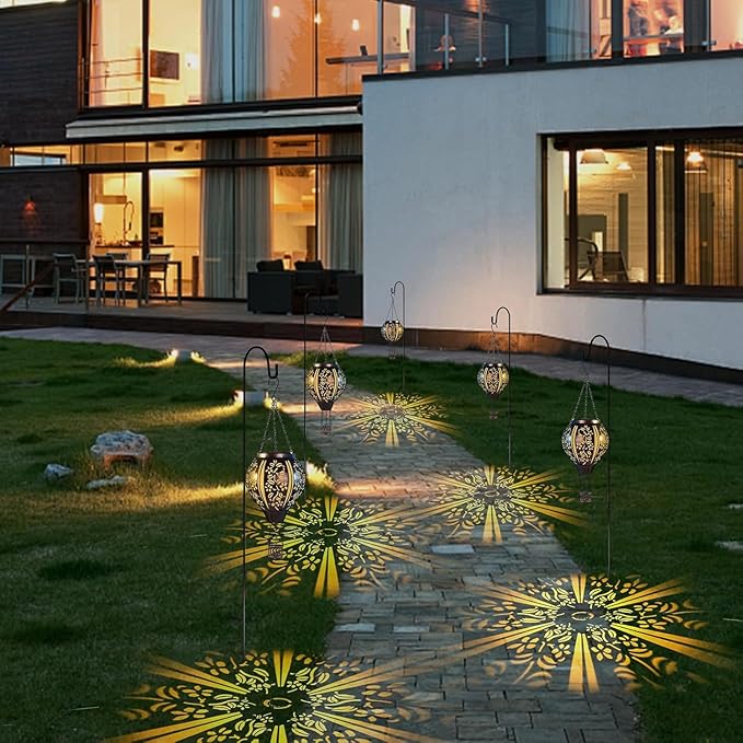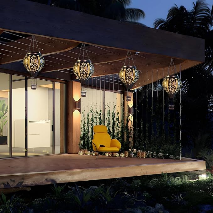 - 【Easy to Use】-- These solar hanging lanterns are suitable for all kinds of scenes.It is an excellent decoration for gardens, patios, pools, paths and even camping. It can be hung not only on the porch and the tree. Perfect for birthday gifts for women, mom, Christmas, New Year, holidays, parties, weddings and so on.
