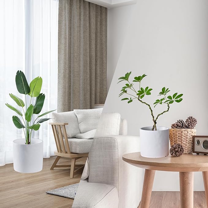- 【MINIMALIST ROUND DESIGN】This minimalist planter beautifully displays an array of plants. This classic white planter works well with most furniture. The round shape of this planter will bring an incredibly modern touch to your home.