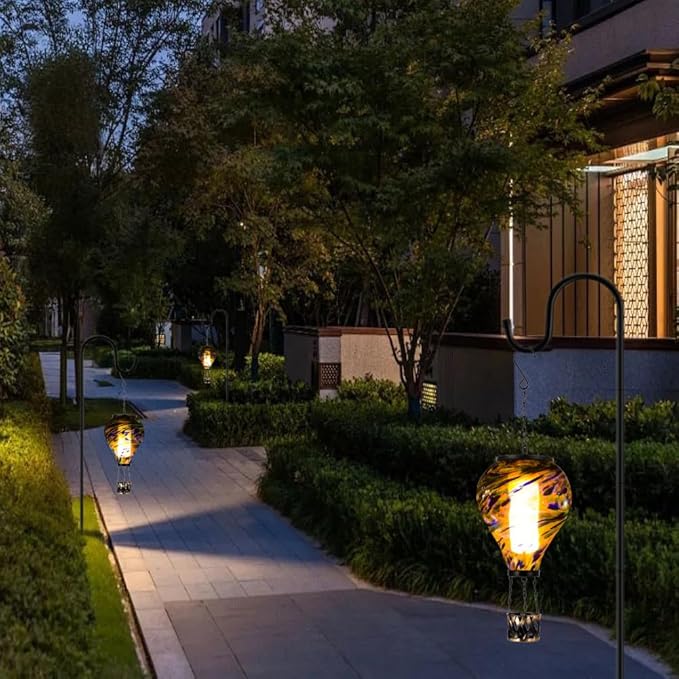 - 【Wide Application】Solar hot air balloon lantern with flame is a great home decor. You can hang the solar lantern on porches, trees, pergolas, balconies, or ledge. Add elegance and color to your outdoor space with this beautifully crafted hot air balloon decorations.