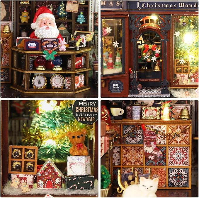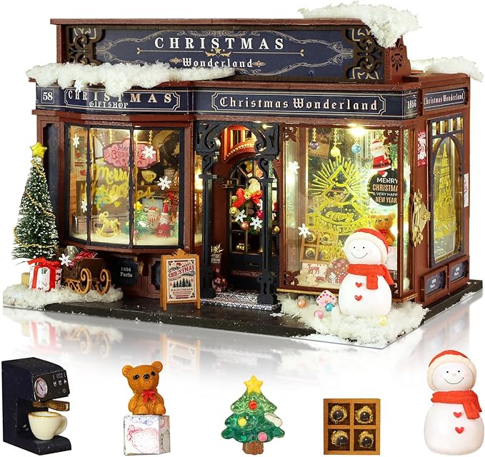 Miniature Dollhouse Kits, Tiny House Kit and Light, Doll House Kits for Adults to Building, Unique Gift for Birthday Christmas Day, Christmas Wonderland