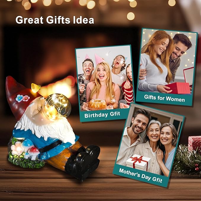 - 【Great Gnome Gift】Unique shaped bubble blowing gnome statue outdoor solar lights, placed in the yard, as if in a fairy tale world, a perfect gift for women.