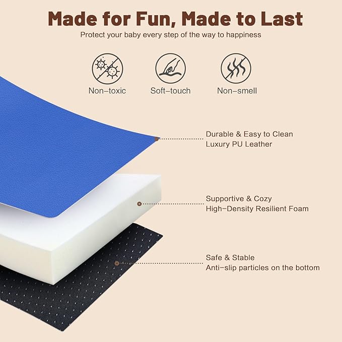 - Durable and High Quality: This foam climbing block for toddlers 3 years old is made of high quality soft foam and soft PU leather, durable and very easy to clean and maintain. Your child can safely toddle and roll on the toddler climbing toy that is both soft and supportive. This is a foam climbing blocks that parents can use for their babies with confidence