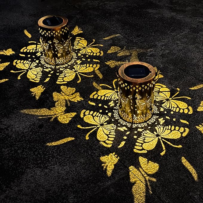 - Greatful Garden Decorative: solar lanterns adopts hollow out design and Butterfly pattern.Solar lanterns could project beautiful patterns, creating a gorgeous and warm atmosphere.Perfect for decorations for,patio,lawn,backyards,porch and many other scenes.