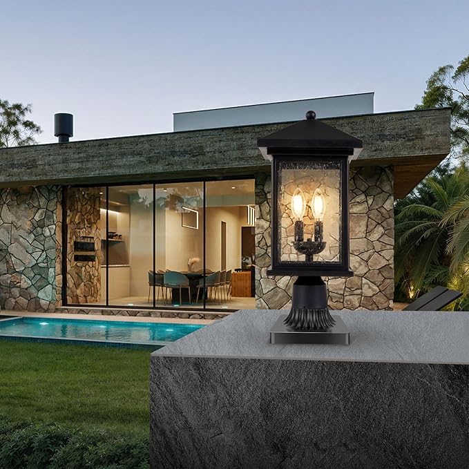 - ✔ Classic Design with Modern Appeal This large outdoor post lantern features a traditional design with clean lines and elegant detailing. The matte black frame paired with clear glass ensures it complements a variety of exterior styles, from rustic to contemporary.