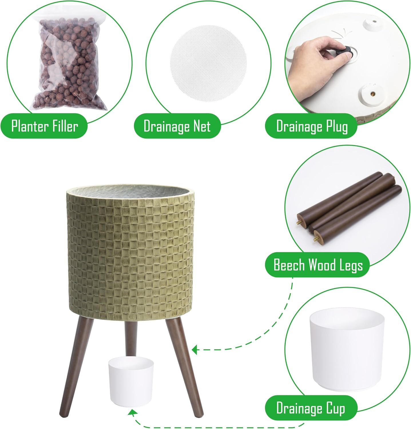 - Sturdy Wooden Legs: Supported by sleek wooden legs, this planter offers a stable base and enhances its overall aesthetic appeal.