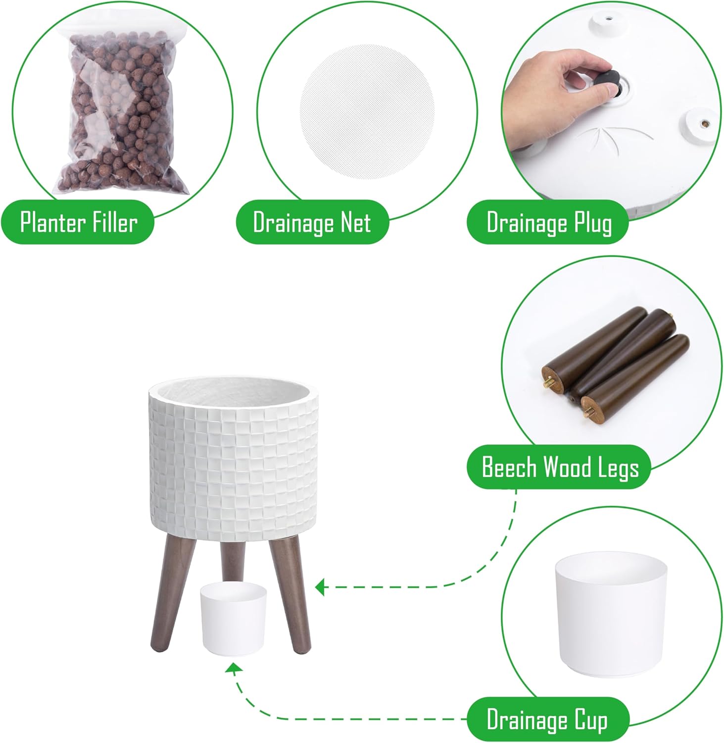 - Stable Wooden Stand: Comes with a sturdy, mid-century-style wooden stand to elevate your plants while enhancing stability and style.