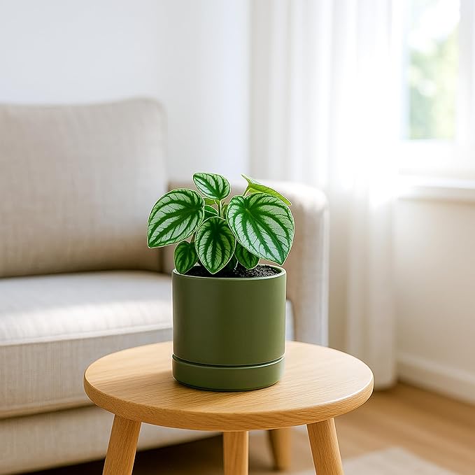 - Drainage holes and detachable/perfectly fitting ceramic saucers included.
