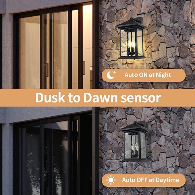 - ⬤【Built-in Dusk-to-Dawn Sensor】Automatically turns on at dusk and off at dawn based on surrounding light conditions. Enjoy hands-free, energy-efficient outdoor lighting.