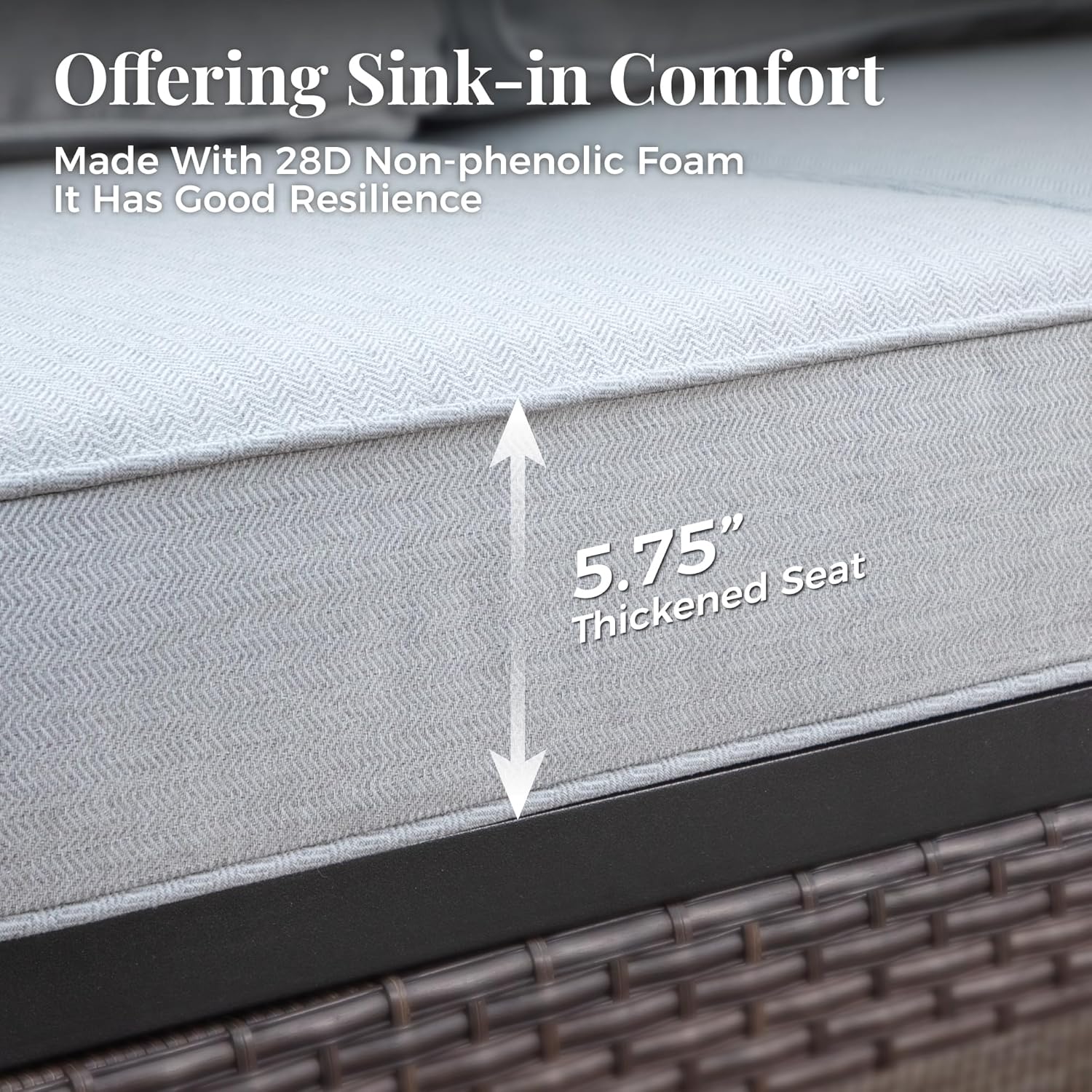 - Superior Comfort: The MIXPATIO Patio Furniture Sofa provides the ultimate relaxation experience with its deep seating and plush 5.75” cushions. Sink into luxurious comfort as you unwind on this outdoor sectional couch, designed to offer a cozy retreat in your lawn, backyard, porch, or deck