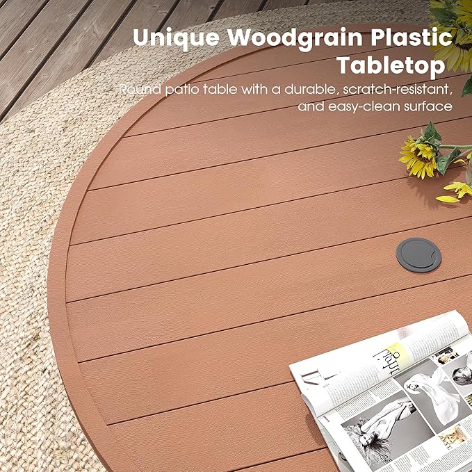 DIFY Round Outdoor Patio Dining Table for 4, 41.7" Patio Table with All-Weather Faux Wood Tabletop and Metal Steel Frame, Outside Table for Garden Porch Backyard, Walnut