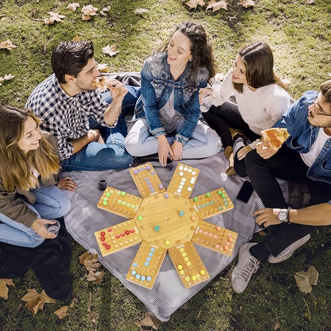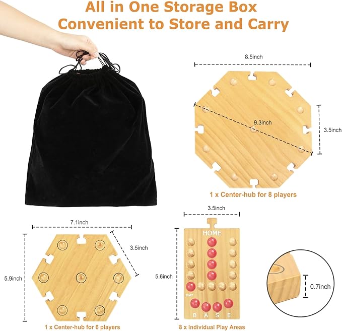 - 【Plusvivo Luxurious Marble Board Game Set】Made from high-quality wood with a 8-color painted design and text instructions for easy navigation from start to finish. The marble board game comes with 32 Marbles 16 Dice, and a velvet storage bag. The wooden game board can be assembled according to the number of players. Comes with detailed instructions so newbies can master the game in minutes and join the fun!