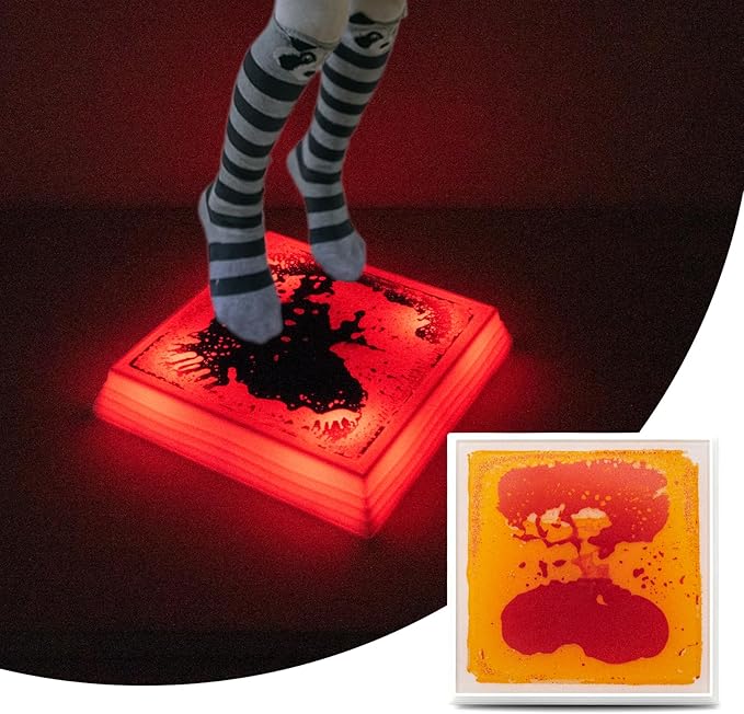 Art3d 12×12 Inch Sensory Interactive Yellow-Red Liquid Motion Tiles for Toddlers Kids & Adult - Touch Sensitive 7 Color Changing Flooring Tile for Home Décor, Indoor & Outdoor Activities, 1-Pack