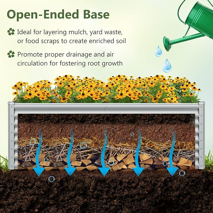 - [Spacious Planting Area & High-Quality Powder-Coated Surface]: This raised garden bed offers a generous planting space measuring 72” x 36” x 24” (L x W x H), allowing you to plant a wide variety of flowers and vegetables. The ample size also ensures that it can accommodate a large amount of soil. The powder coating craftsmanship is superior to galvanized finishes as it provides outstanding rust-proof functionality.