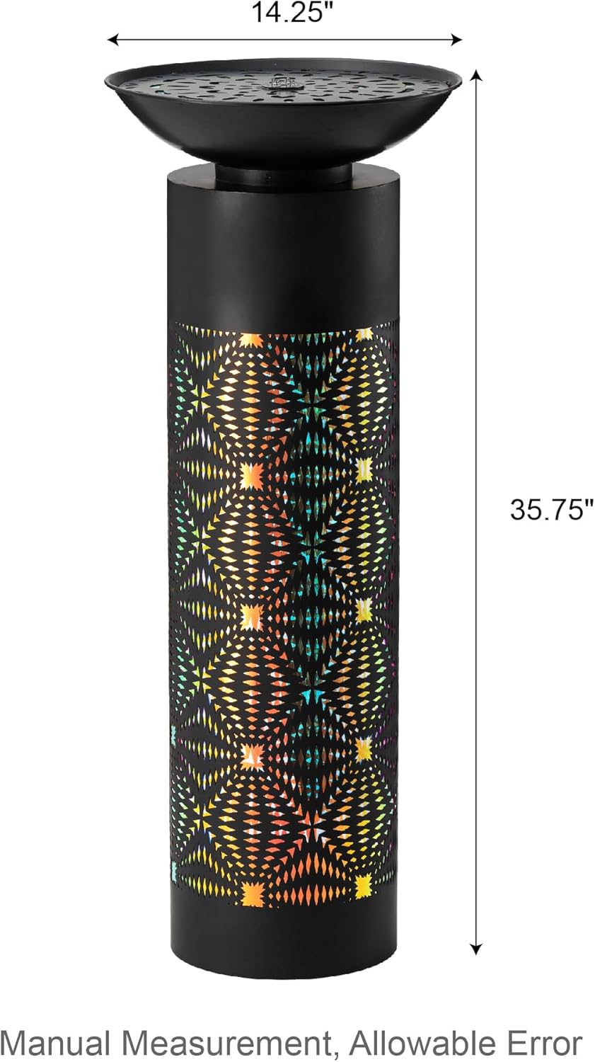 Glitzhome Modern Black Metal Cutout Water Fountain - 36'' Outdoor Bird Bath Fountain with LED Light & Pump - Freestanding Waterfalls Garden Fountains for Patio Backyard Porch Patio Decor