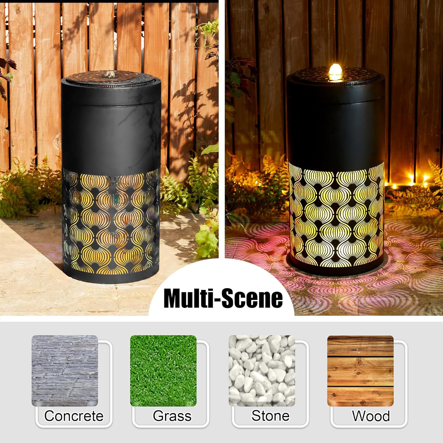 - Relaxation Sound --- Water bubbling and spilling into the pool, the soothing sound of cascading water helps to create a relaxing and meditative atmosphere. The soothing sound of cascading water is sure to relax you after a long day. Metal Cutout Pattern match warm LED lights, seems bloom a sea of flowers in the night, brings life and vitality to people.