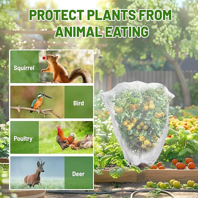 - Ultra Fine Mesh Netting: Constructed of super dense 60 mesh (0.8 mm x 1 mm), plant cover will protect your vegetable and fruit trees away from animals eating like birds, squirrels, rabbits, help you have more and tastier fruits