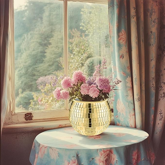 - Captivating Light Play: Each disco ball vase features a mesmerizing surface adorned with reflective mirror pieces that beautifully capture and refract light. This captivating effect creates an eye-catching focal point, even in dim lighting, making any room feel festive and lively.
