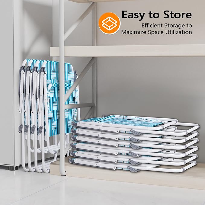 - STABLE CONSTRUCTION:Heavy duty metal pipes add strength and durability to the folding lawn chairs. Anti-slip pads are used to protect the floor and prevent slip on the poolside