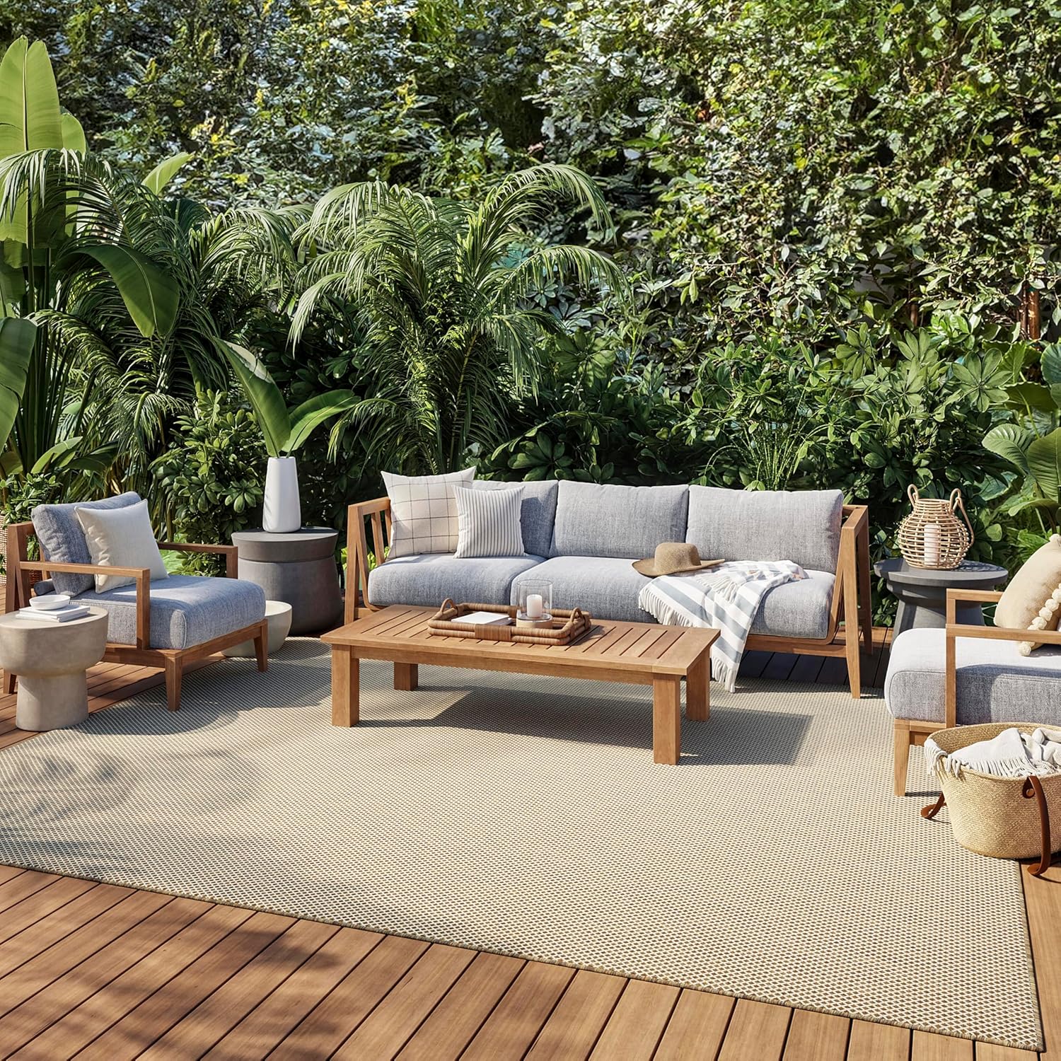 Nourison Home Courtyard Jute Ivory 8' x 10' Area Rug - Easy Clean, Non Shedding, Bed Room, Living Room, Dining Room, Kitchen (8' x 10')