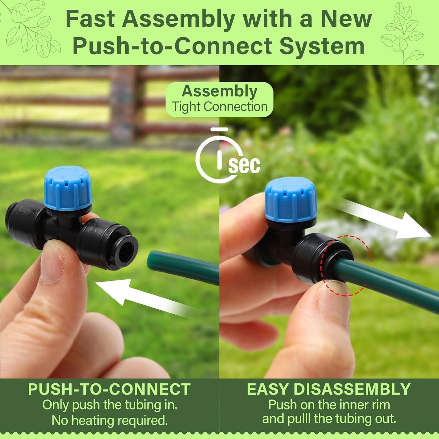 - 🌱 DIY-friendly irrigation system for garden – Quick-connect design and flexible tubing make setup easy in just 5 minutes. The drippers are twist-open for cleaning, preventing clogs and extending the life of your drip system.