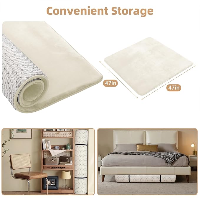 - Thick Padded Foam Play Mat:The mat features a 1.2-inch thick memory foam core and ultra-soft flannel fabric surface.It's perfect for a 47x47 baby playpen,offering both support and plush comfort,providing a soft and sturdy surface for babies and toddlers to explore and play without worries of bumps or falls.