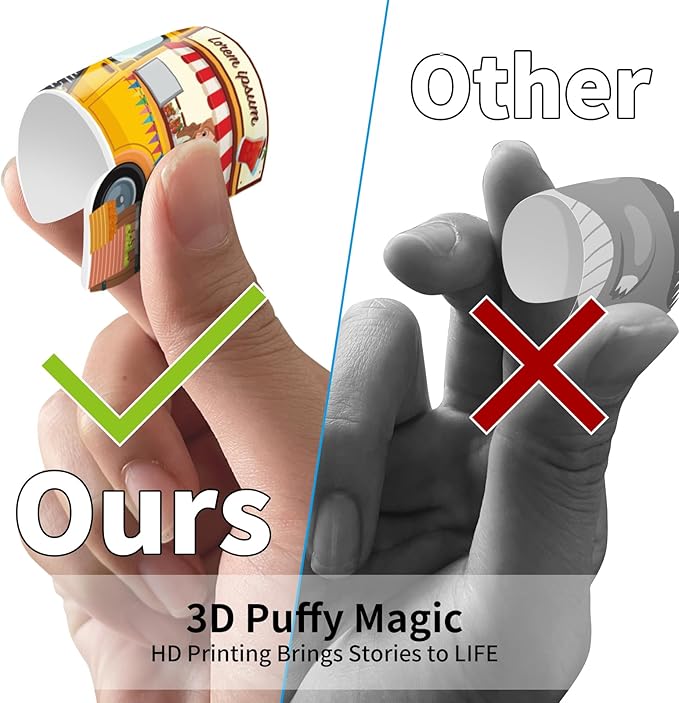 - 250+ Reusable 3D Puffy Stickers with Zero Residue: "Each book includes 40+ 3D HD Printing stickers, Clear and colorful, Tear-resistant material - Peel, Play, Repeat! Can be peeled off and repositioned easily without damaging the sticker or surface, perfect for toddlers small hands to peel and who like to rearrange the scene.