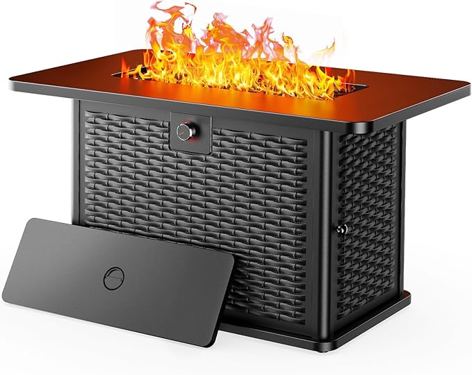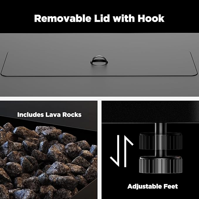 - 2-in-1 Fire Pit Table: Effortlessly transform the outdoor fire table into a regular table using the included cover. It protects against dust & rain while also providing a sturdy surface. This feature adds versatility to your outdoor fire pit propane table, making it a functional centerpiece for your patio even when the fire is not in use.