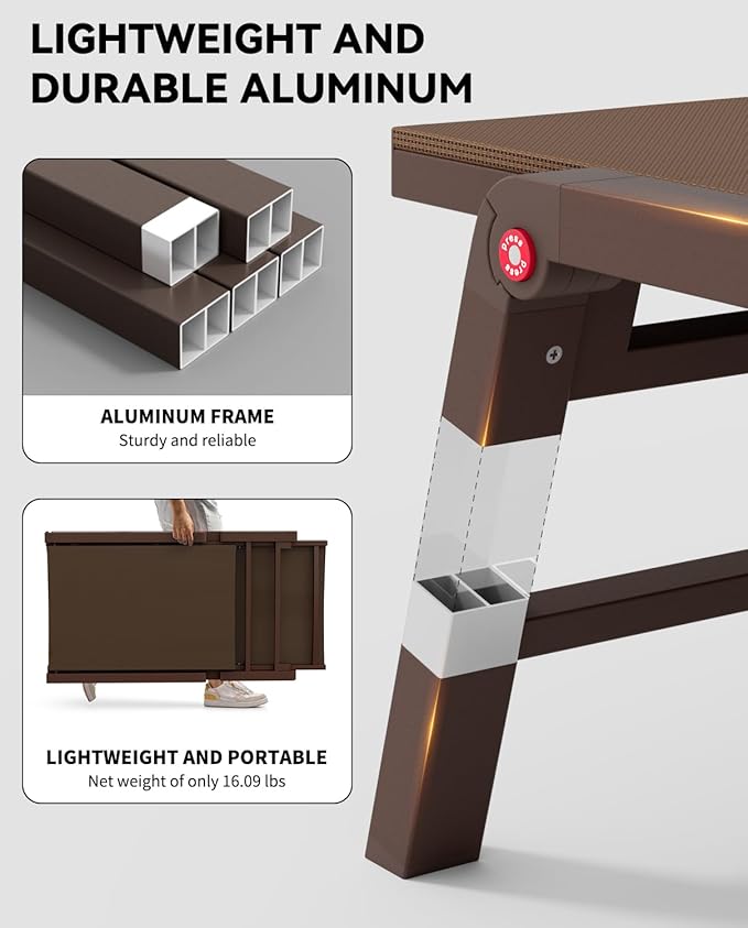 - 【DURABLE & LIGHTWEIGHT】Constructed with a powder-coated aluminum frame, the outdoor patio lounge chair is rust-proof for lasting use. Thickened tube walls make it support up to 400 pounds, catering to most body types. And lightweight design offers effortless portability and comfort for any outdoor adventure