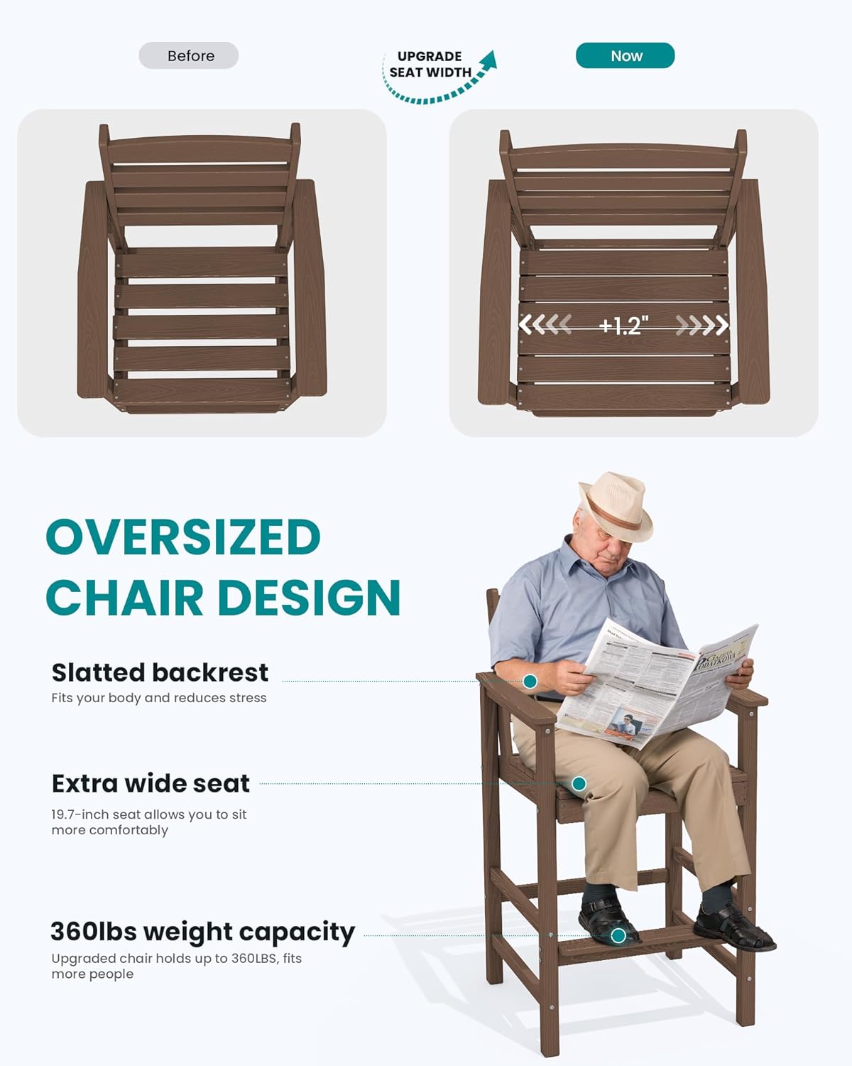 - Built-in Footrest - The built-in footrest is 2.56" wide, which allows the person sitting in the chair to relax their feet, and also allows children to step on the pedal and sitting on the adirondack bar chair.