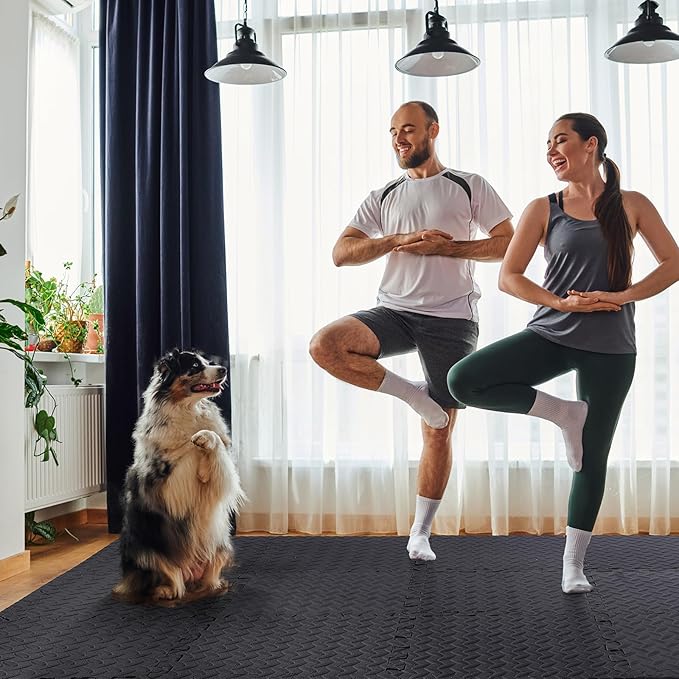 20 Tiles 12x12x1 Inch EVA Thick Interlocking Foam Floor Tiles Puzzle Exercise Mat Foam Mats for Pets Boys Girls Classroom Nursery Gym(Black)