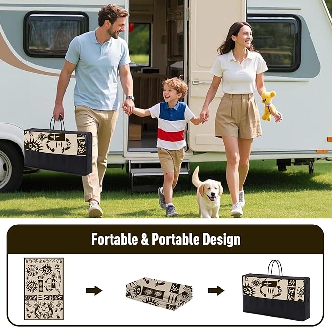 - Portable & Durable: This outdoor plastic rug with seams can be rolled or folded into a compact size and comes with a carrying bag for easy portability. Perfect for outdoor activities, picnics, sunbathing, and RV road trips. The heat-sealed edges prevent wear and tear, withstanding any environment, traffic, or scratches