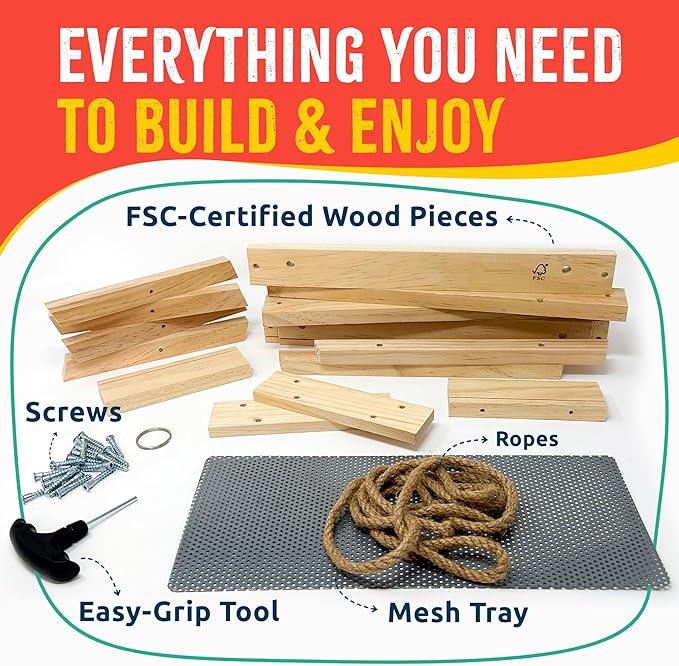 - Includes Everything You Need – The Picnic Table Bird Feeder Kit comes with New Zealand pine wood, coated metal seed grating, screws, and an easy-to-grip hand tool for a seamless assembly experience.