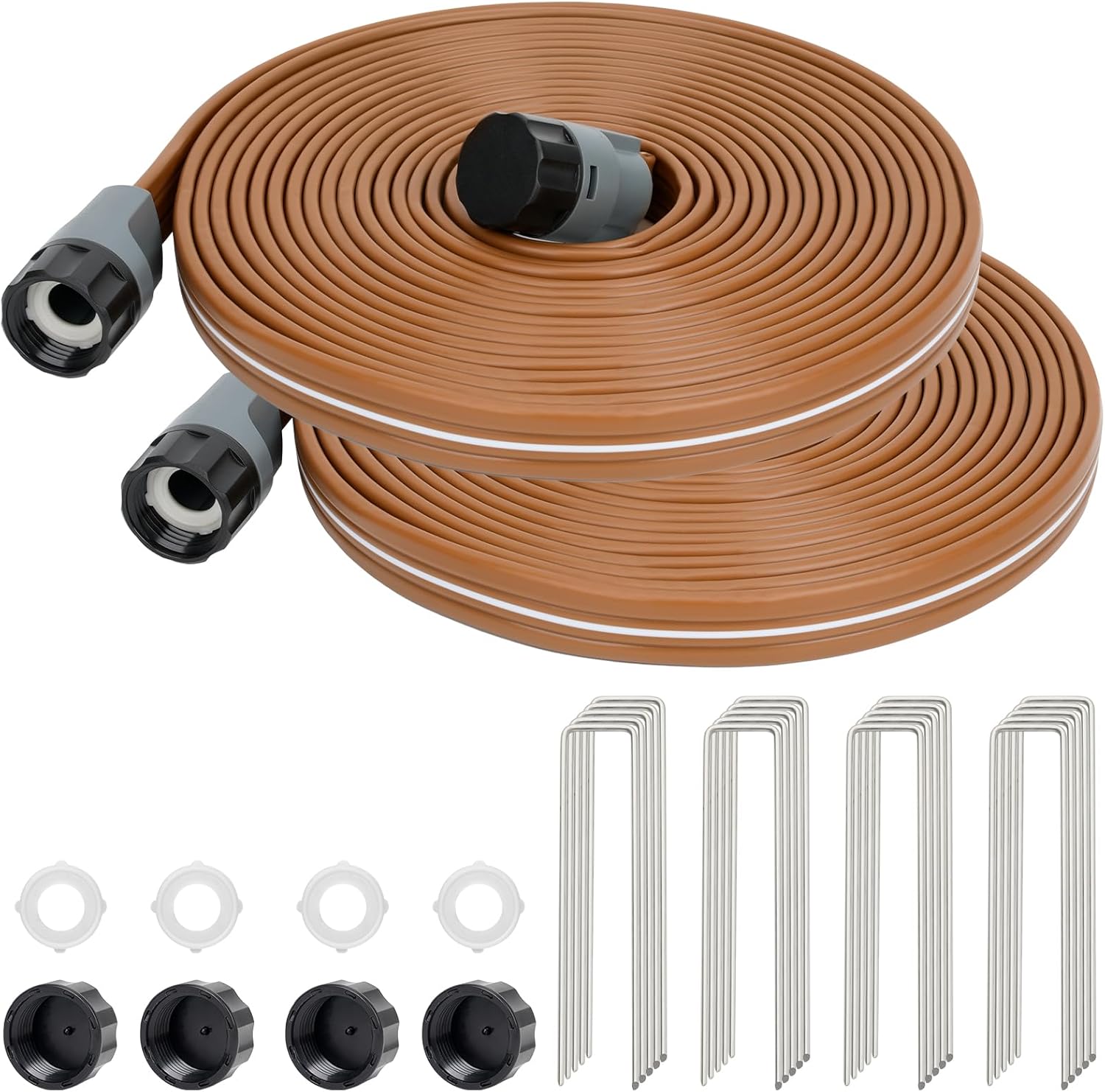 LINEX Sprinkler Soaker Hose 30 ft 2 pack for Garden, Watering Hose with Holes, High-Efficiency Sprinklers System for Lawn and Garden with Staples