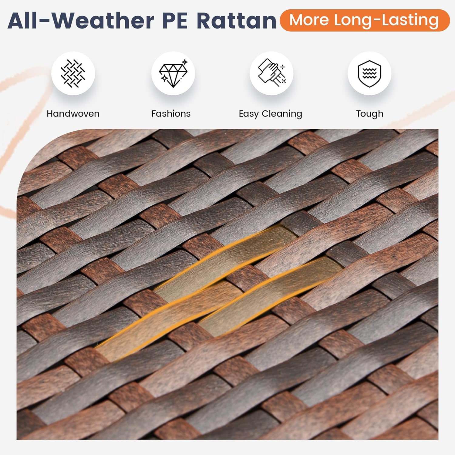 - Cushions for Ultimate Comfort: The 4" high-density foam seat cushion provides firm yet cozy support, while the well-filled back cushion offers a plush, cloud-like feel. Non-slip granules and tie straps keep them securely in place. Wrapped in durable 220D waterproof, fade-resistant fabric, these cushions withstand the elements while staying soft and stylish.