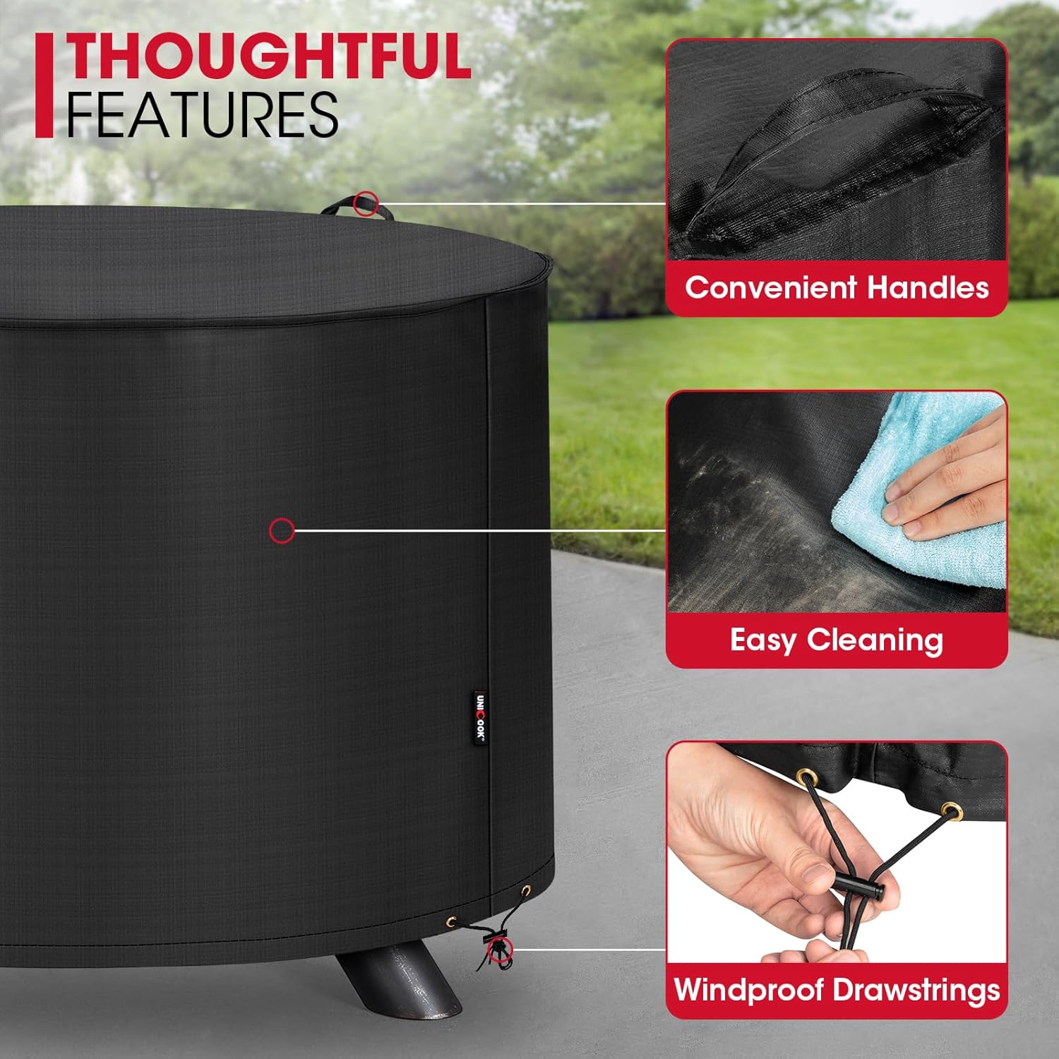- Our Pursuit: Unicook, a reliable brand with over 20 years of experience, continuously improves and innovates our product line, offering a diverse range of effective-protected covers for your beloved grill/firepit, including outdoor grill covers and fire pit covers. If you need any assistance, please contact us