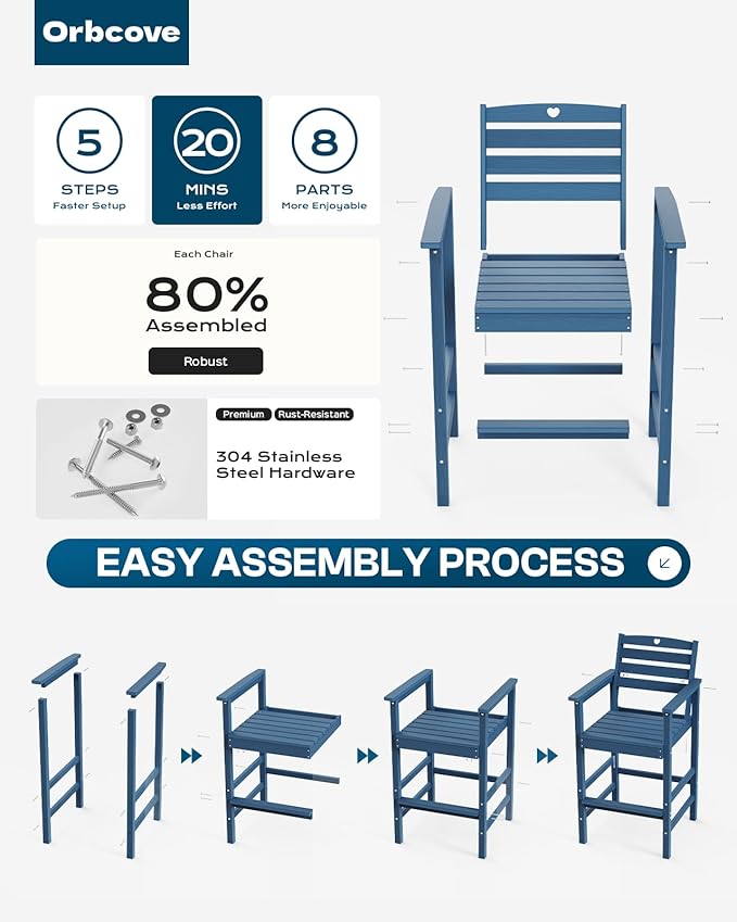 - Hassle-Free Assembly & Maintenance: Quick assembly with clear instructions and included hardware. The waterproof, fade-resistant surface ensures this patio furniture set requires minimal maintenance—just wipe it with soap and water to keep it looking new.