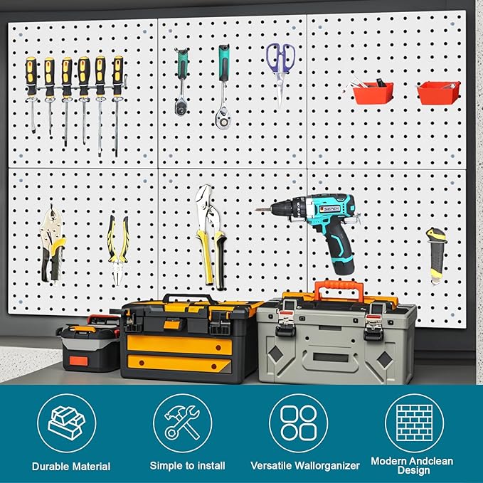 6 Pack Steel Peg Board,Universal 1/8 and 1/4 Pegboard Accessories,Ideal for Garage Tool Storage, Office Organization, Craft Room, Kitchen etc. (White, 6-12X12)