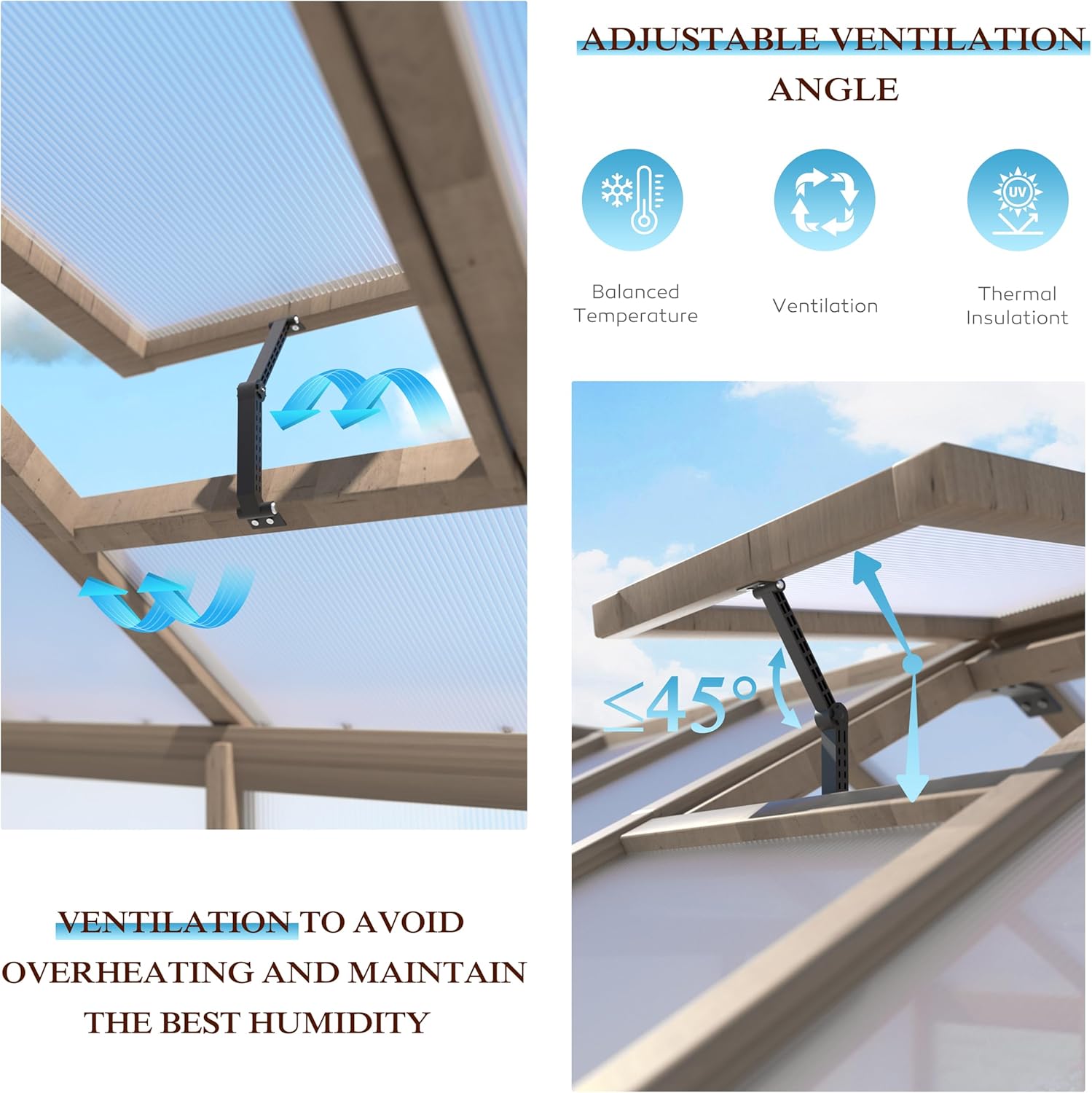 - Year-Round Plant Protection - The wood greenhouse features an adjustable vent, providing your plants with optimal growth conditions by regulating temperature and airflow. Our polycarbonate greenhouse is perfect for safeguarding against unexpected weather changes. This feature is essential for preventing overheating and promoting the health of your garden.