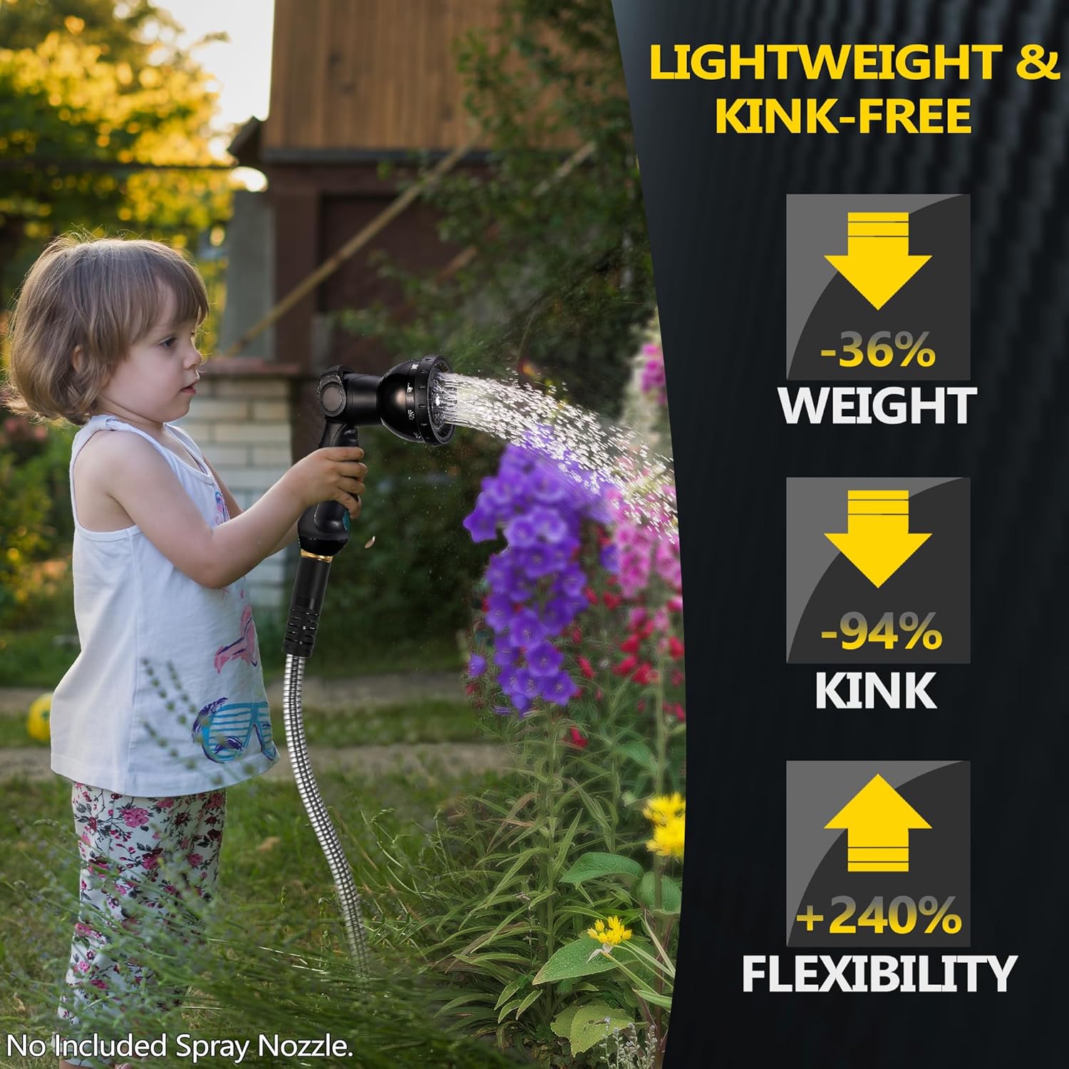 - Super Durable &No More Leaks: The 2025 upgraded garden hose is made of the high-quality stainless steel, 3/4 inches 100% solid brass connector, extremely functional, lightweight and flexible, durable. The hose will less kink, twist, leak, burst or get tangled up while in use.