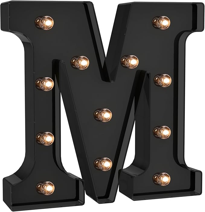 Foaky Black LED Letter Lights for Room Decor - Bedroom Wall Decor, Alphabet Lights for Home, Wedding, Party - Battery Operated (M)