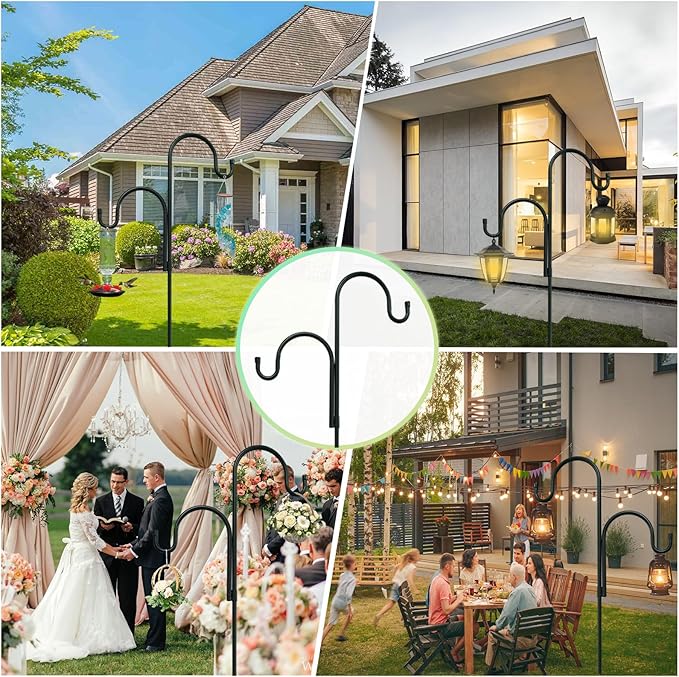 - 【Multi-Purpose Use】 Our bird feeder poles for outdoors heavy duty are versatile enough for all types of outdoor decorations. Whether it's bird feeders, solar lights, wedding decorations, street lamps, flower pots, plants, or candlesticks, these hooks provide endless possibilities for your garden or patio. They are perfect for everyday use and special events, adding charm and function to any outdoor setting.