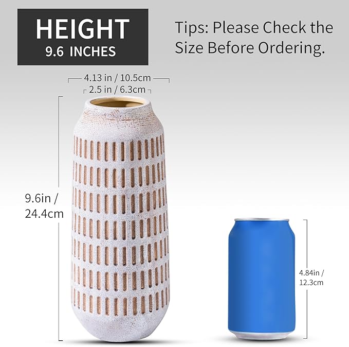 - [Farmhouse Vintage Design] Inspired by European countryside aesthetics, this 9.6" rustic ceramic vase combines stone texture with concrete grey finish for timeless farmhouse decor. Perfectly coordinates with modern, boho or industrial styles. Use as a centerpiece on fireplace mantels, kitchen counters, bookshelves, or entryway consoles to elevate home decor instantly.