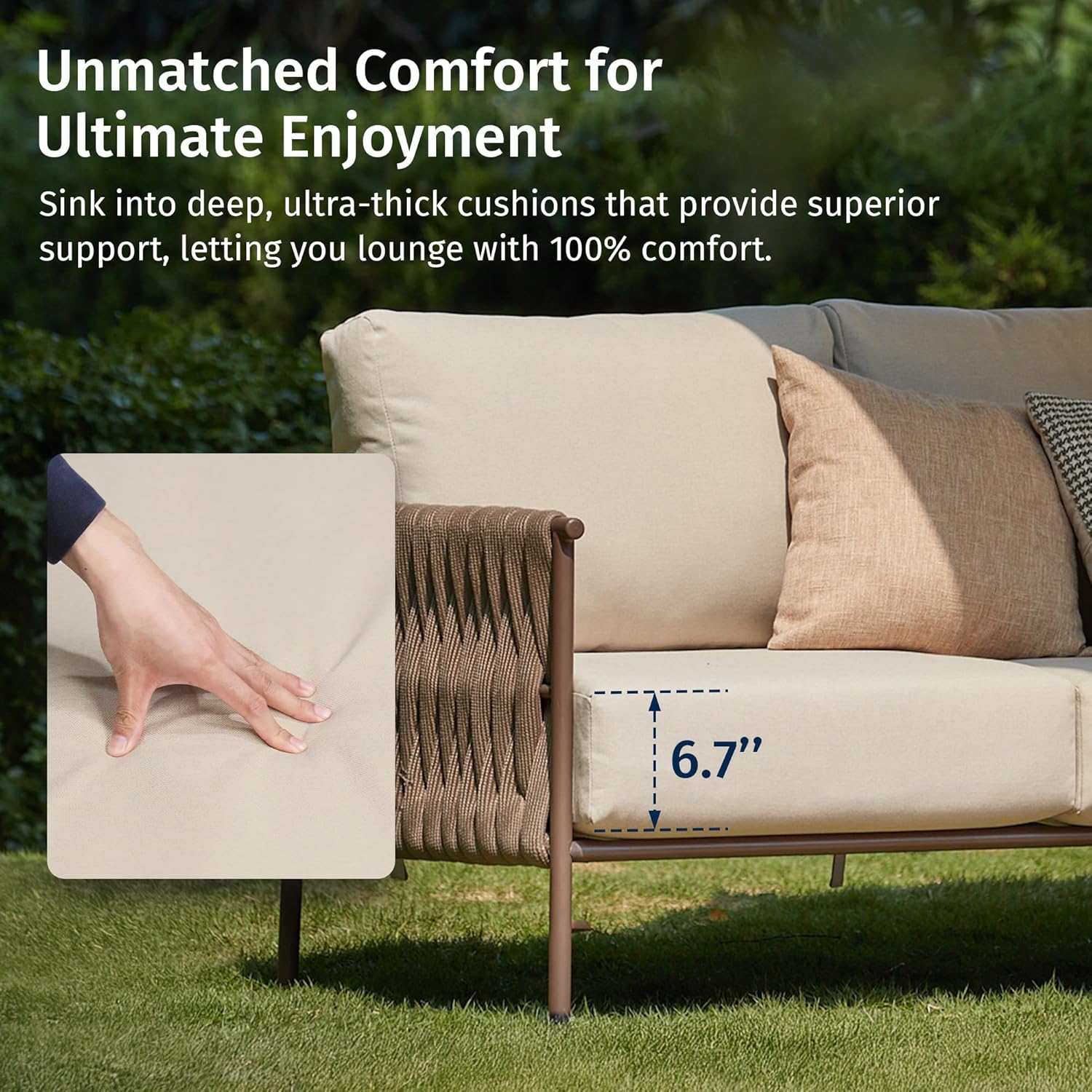 - EXTRA-THICK CUSHIONS FOR ULTIMATE COMFORT: Sink into 6.7-inch high-density foam cushions for deep, lasting support and relaxation. Designed for long hours outdoors, the ergonomic design maximizes comfort, while the removable, washable covers keep your seating fresh and easy to maintain