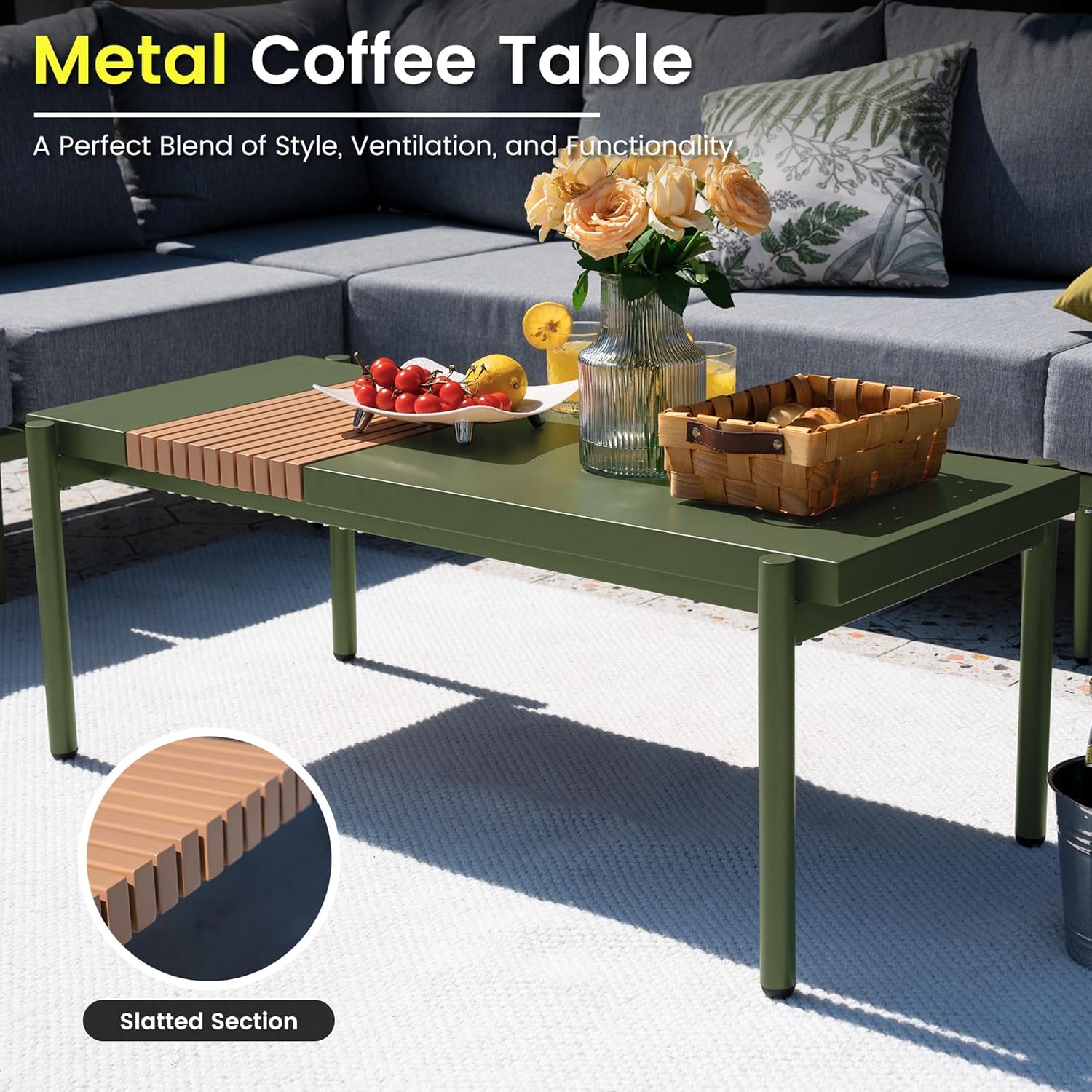 Sundale Outdoor 5 Pieces Metal Patio Furniture Set, Outdoor Sectional Sofa w/6 Inch Olefin Cushion and Coffee Table, Modern Outdoor Conversation Sets