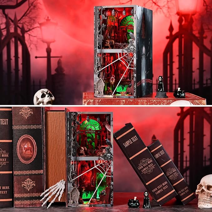 - π οΈπ―οΈ Fun to Build: Whether you're a beginner or an experienced crafter, this DIY miniature book nook kit offers a fun and rewarding building experience, enhanced by LED lights that set the perfect haunted mood.