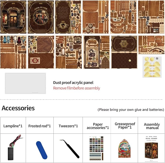 - Royal Seamer Book Nook: Enter a mystical retro tailor shop with our DIY Book Nook Kit. This 3D wooden miniature, inspired by a vintage shop, serves as both a diorama and bookshelf decoration. Ideal for book lovers and fantasy enthusiasts