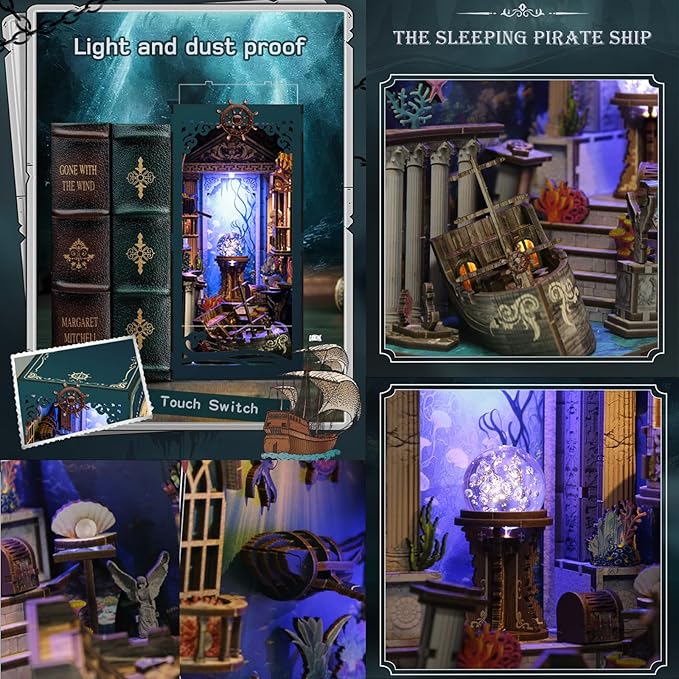 - Enchanting Seabed Riddle Book Nook Kit: Dive into a mystical underwater world with our DIY Book Nook Kit. This 3D wooden miniature kit, inspired by the treasures of the deep, functions as both a diorama and bookshelf decoration. Perfect for book lovers, fantasy enthusiasts, and those who appreciate unique home decor
