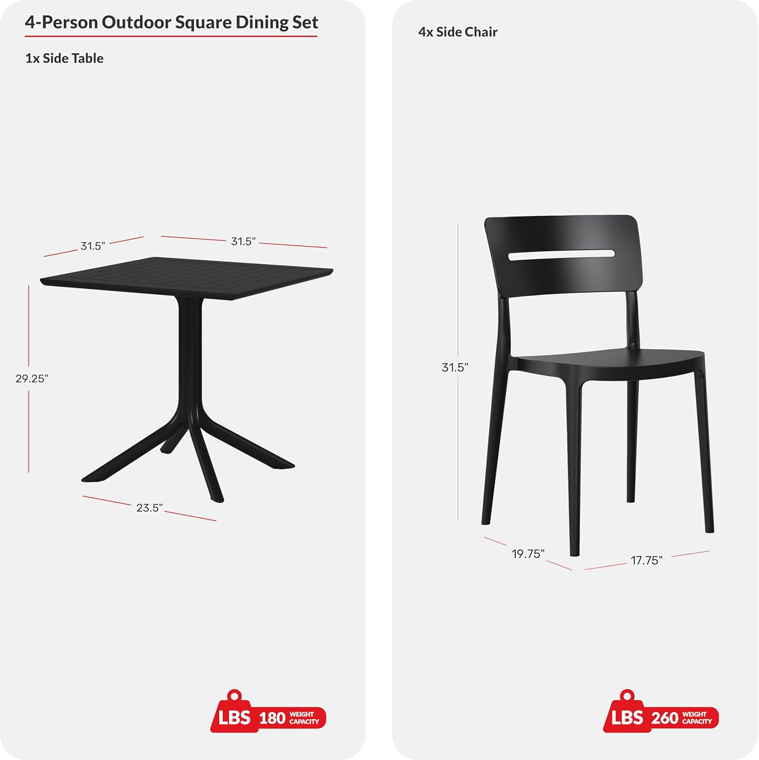 5-Piece Outdoor Dining Set, HDPE Patio Square Bistro Table and Stackable Chairs Sets for 4, Patio Furniture All Weather for Backyard Poolside, Olive Green