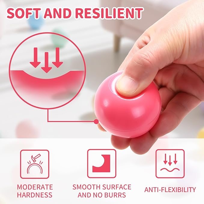 - ♥Strict quality control. Phthalate Free BPA Free. Using high-quality plastic, so that each ball is not easy to break, a unique forging process, so that each ball is flexible, environmentally friendly coloring material, so that each ball is bright and shiny, no smell.