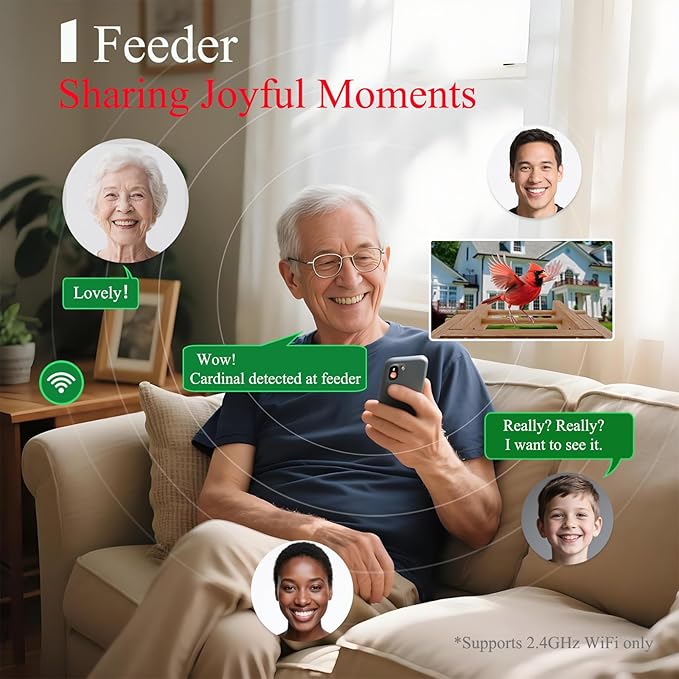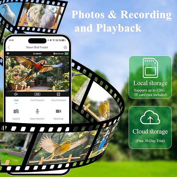 - 🎁【Suitable for Birdwatchers and Bird Lovers】- The smart birdwatching camera can record videos and save them to the cloud (3-day loop recording, 1-month free trial) or a memory card (up to 128G, not included). The outdoor bird feeder app supports multiple users and allows sharing cute bird videos on social media. It will strengthen communication within the family, just like how our parents always share the beautiful moments of birds.